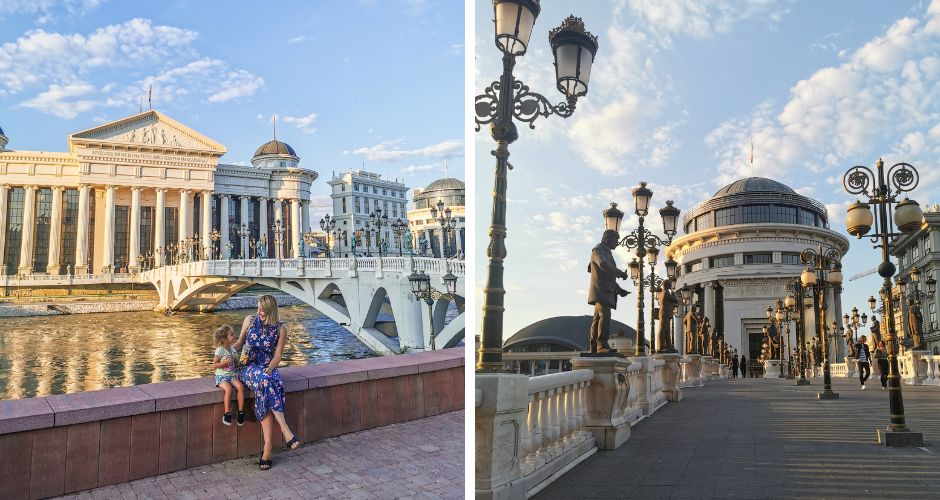 Parkirali smo v garažni hiši pod opero ter pričeli z raziskovanjem mesta. Prvi vtis Skopja je bil res dober. Mesto nas je popolnoma fasciniralo. Že takoj ko smo stopili iz garažne hiše, so nas na poti proti centru iz vseh strani spremljale številne skulpture in spomeniki. Za piko na i pa so poskrbele otomanske in bizantinske znamenitosti okrog mestne Čaršije.