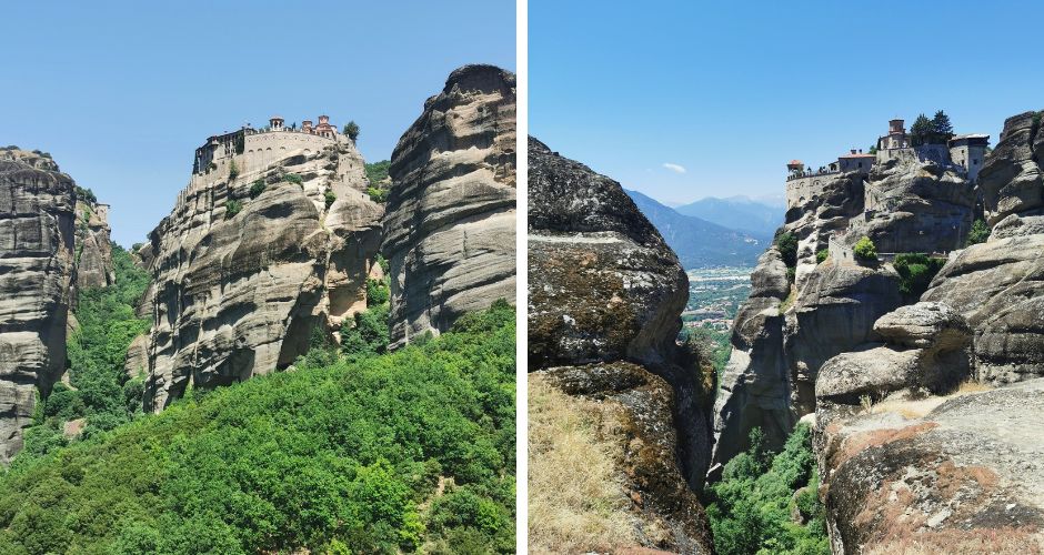 Meteora oziroma samostani v Meteori so ena izmed top destinacij v Grčiji, ki so vredne ogleda. Še danes ni znano, kako so skale pravzaprav nastale. Nekoč je bilo tu še več samostanov, a danes je delujočih samo še šest. V samostanih so nastanjeni menihi in nekaj nun, zato imajo pri vstopu v samostane nekaj striktnih pravil. V notranjost vas ne bodo spustili, v kolikor ste pomanjkljivo oblečeni. Ženske morajo za vstop v samostan imeti krilo čez kolena ter dolge rokave, moški pa dolge hlače in majico. Do vsakega samostana vodijo kamnite stopnice, vklesane v skalo. Cena vstopnine v samostan je 3 eur/osebo.