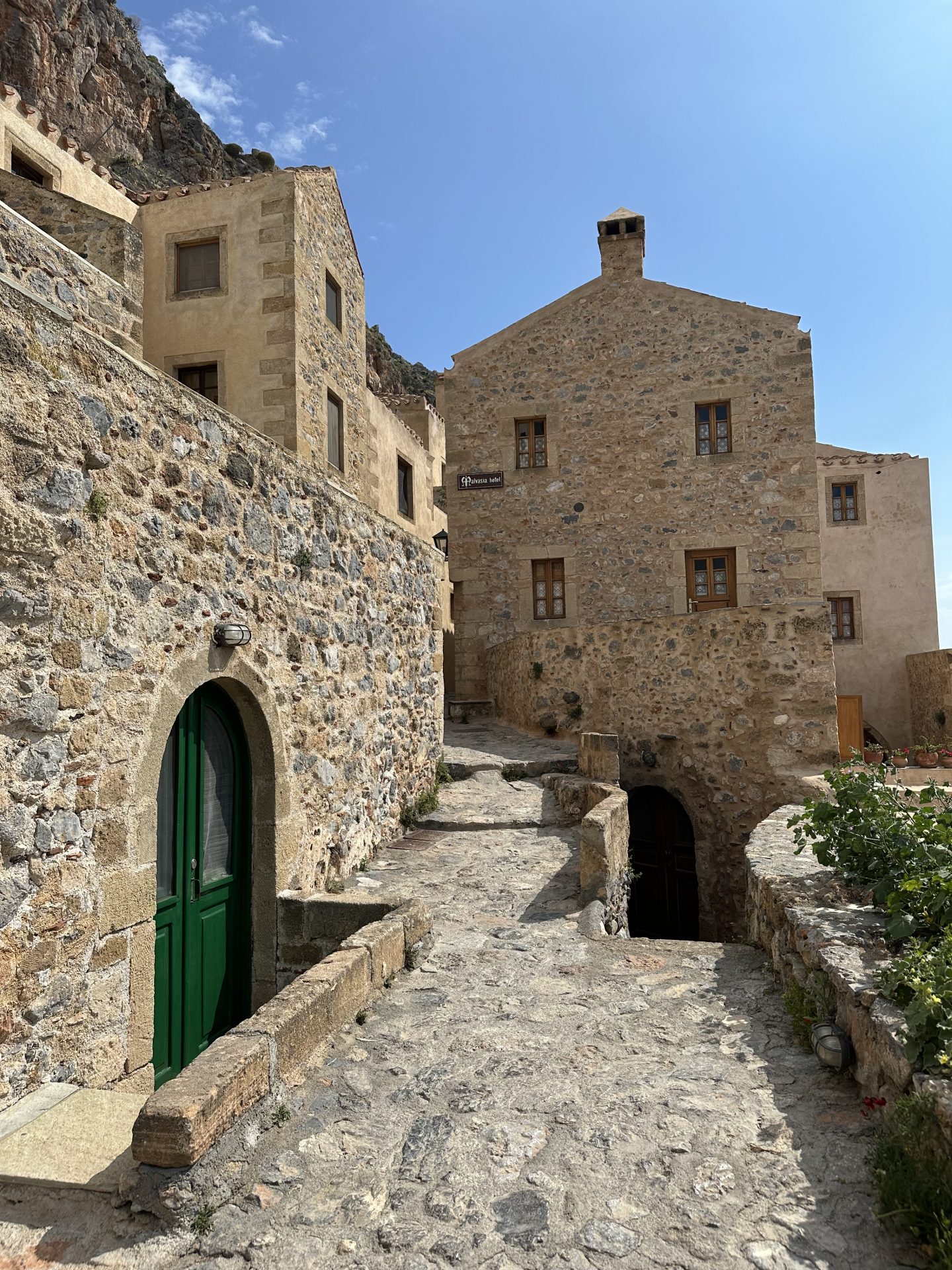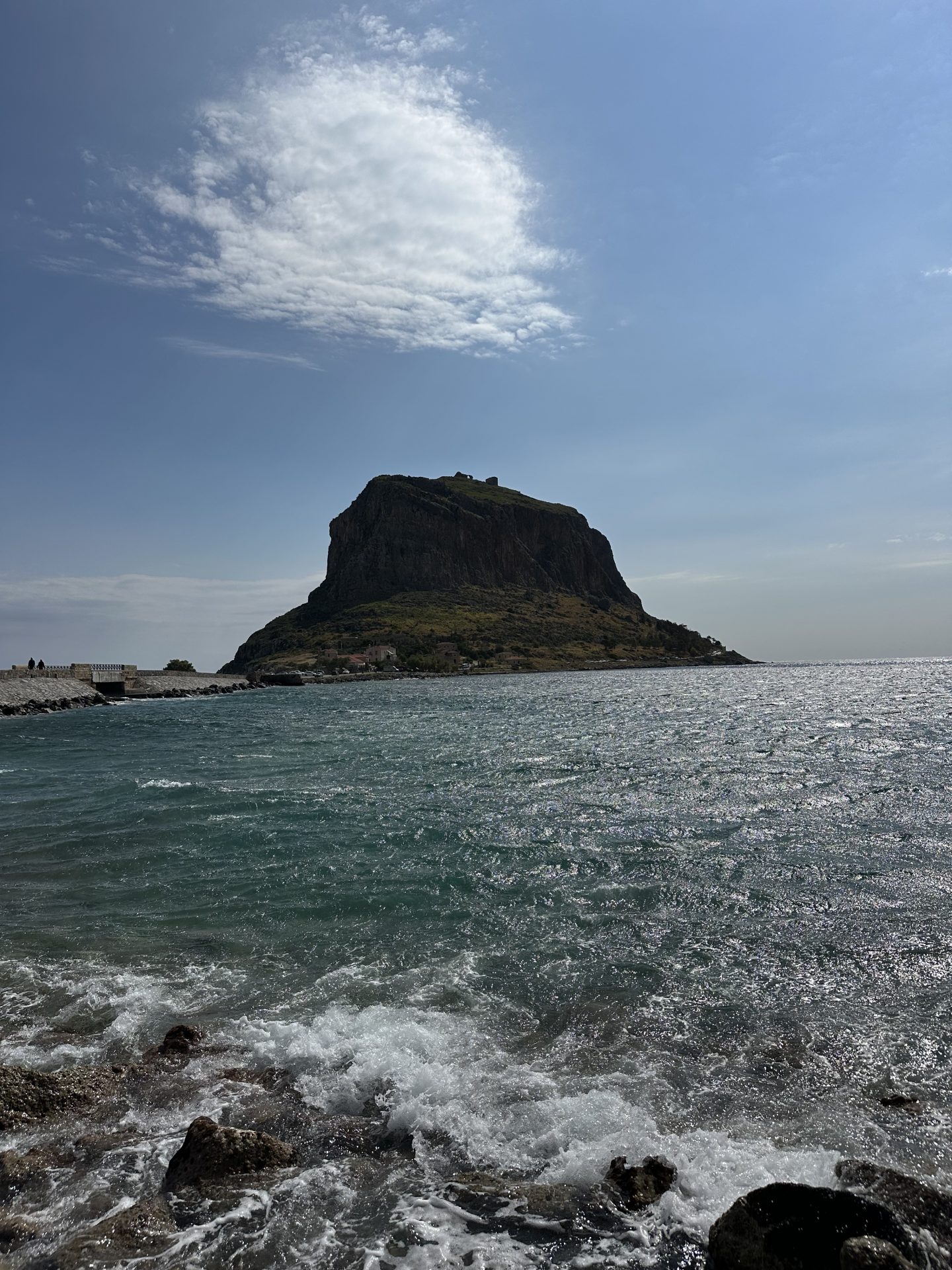 Monemvasia je pravljično srednjeveško mestece, vklesano v mogočno skalo, povezano s kopnim z ozkim nasipom.