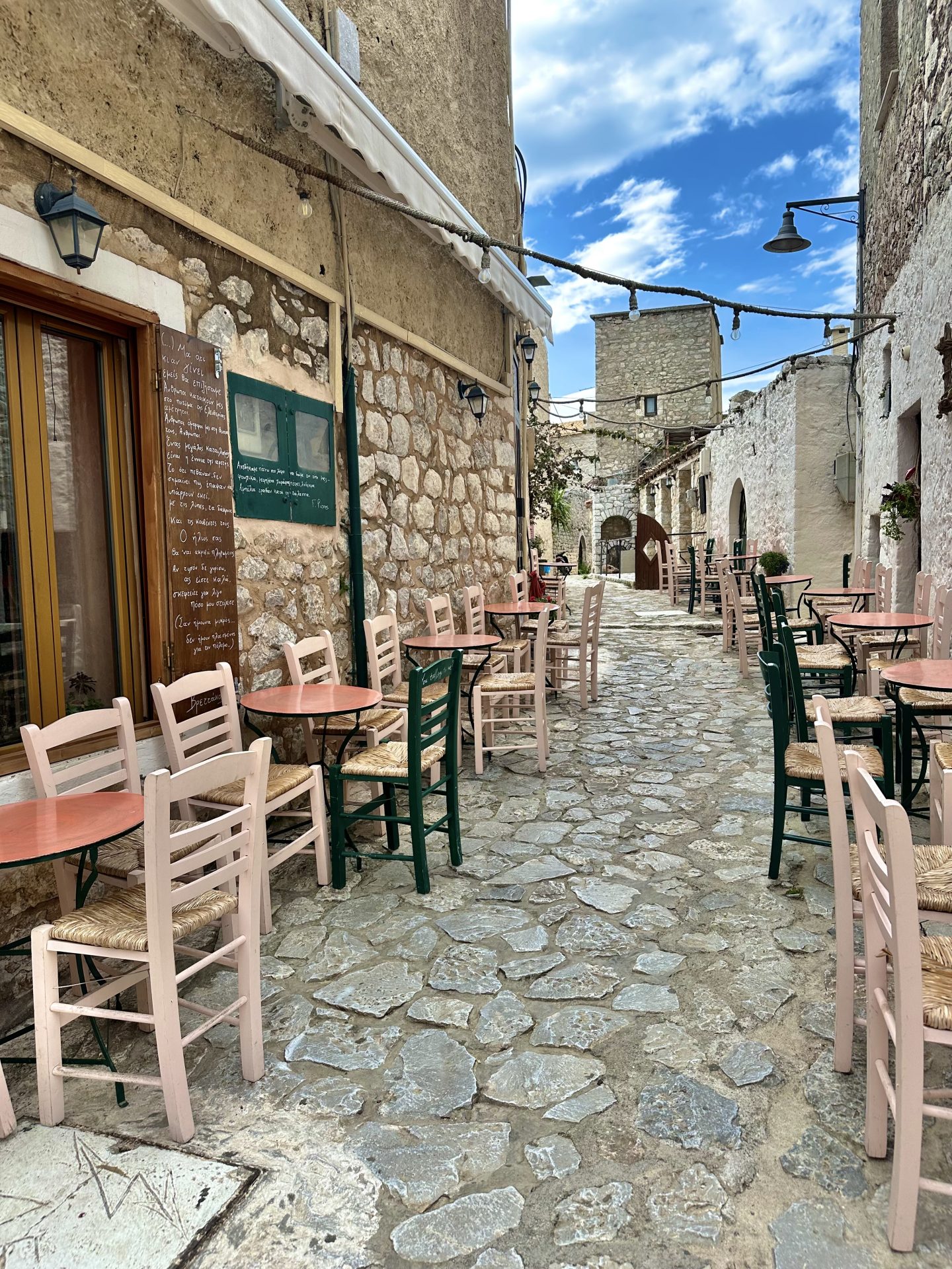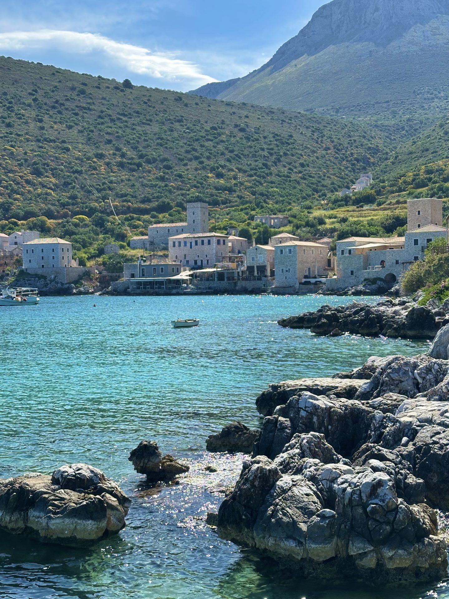 Po legendi sta se Paris in Helena tukaj vkrcala na ladjo, ki je sprožila trojansko vojno. Danes je Gythio prijetno obalno mesto z dobro kulinariko, lepimi plažami in možnostjo izletov. Staro mestno jedro je polno majhnih trgovinic, kavarn in tavern, kjer diši po svežih morskih sadežih in domačem oljčnem olju. Za nas je bil Gythio popoln kraj za raziskovanje južnega Peloponeza ter umirjen popoldanski sprehod, ob katerem smo opazovali vsakdanje življenje domačinov in si privoščili sladoled na glavni promenadi.