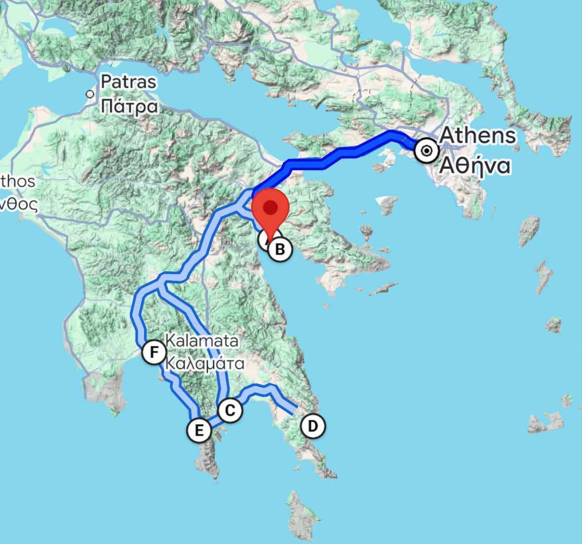 Naše potovanje se je začelo in končalo v Atenah, kjer smo preživeli prva dva dni. Nato smo se z najetim avtomobilom odpravili proti jugu – mimo mogočnega Korintskega prekopa, antičnih Miken ter slikovitih obmorskih mest, kot sta Tolo in Nafplion. Najbolj pristen in divji del potovanja nas je čakal na jugu Peloponeza, kjer smo raziskovali srednjeveško Monemvasio, čarobne jame Diros, ribiško vasico Limeni ipd.