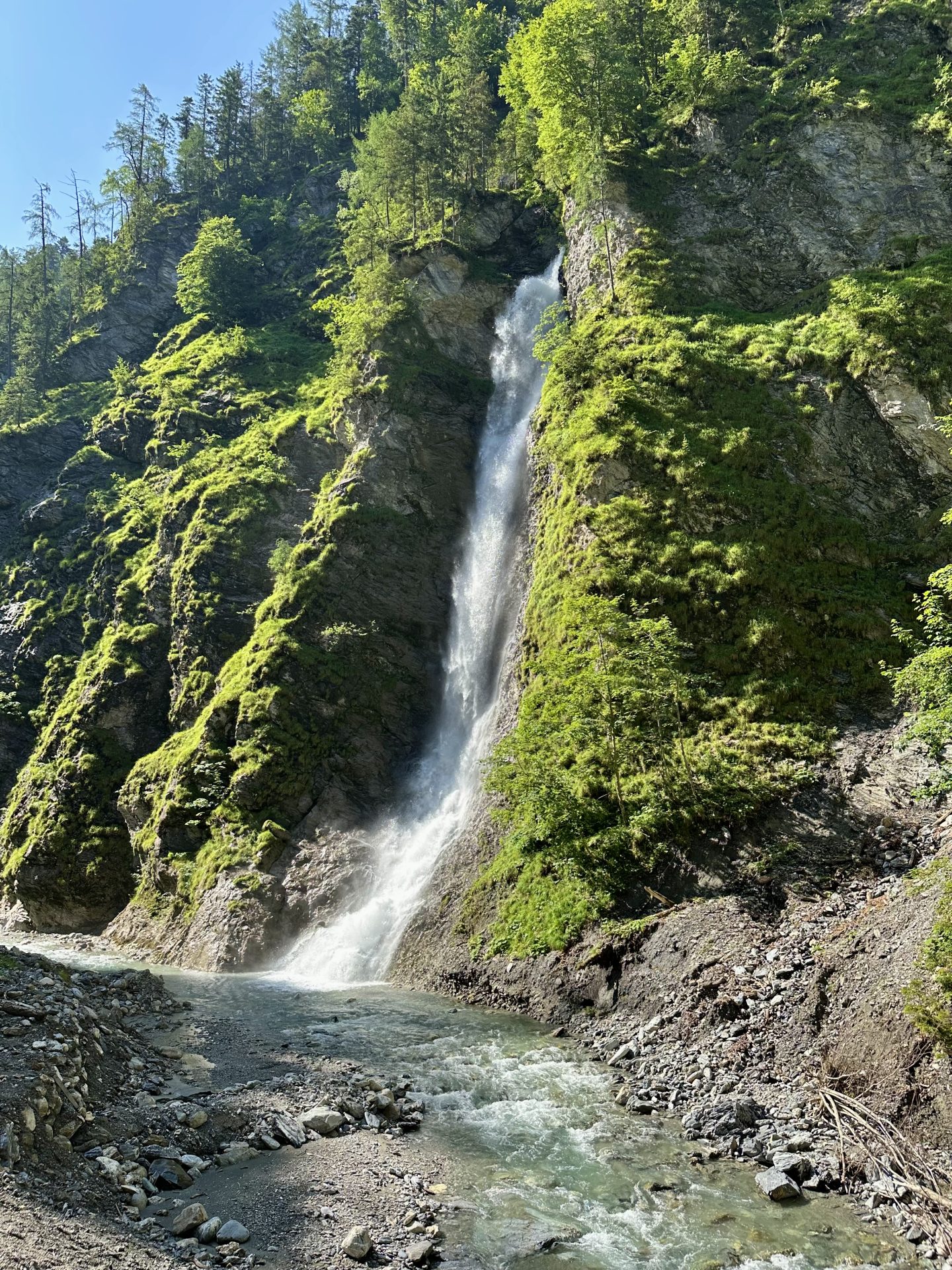 Naš roadtrip smo začeli z obiskom ene najlepših sotesk v Avstriji – Lichtensteinklamm, ki se nahaja blizu kraja St. Johann im Pongau v regiji Salzburg. Soteska je znana po svojih dramatičnih skalnih stenah, turkizno zeleni vodi in številnih slapovih, ki ustvarijo pravljično kuliso.