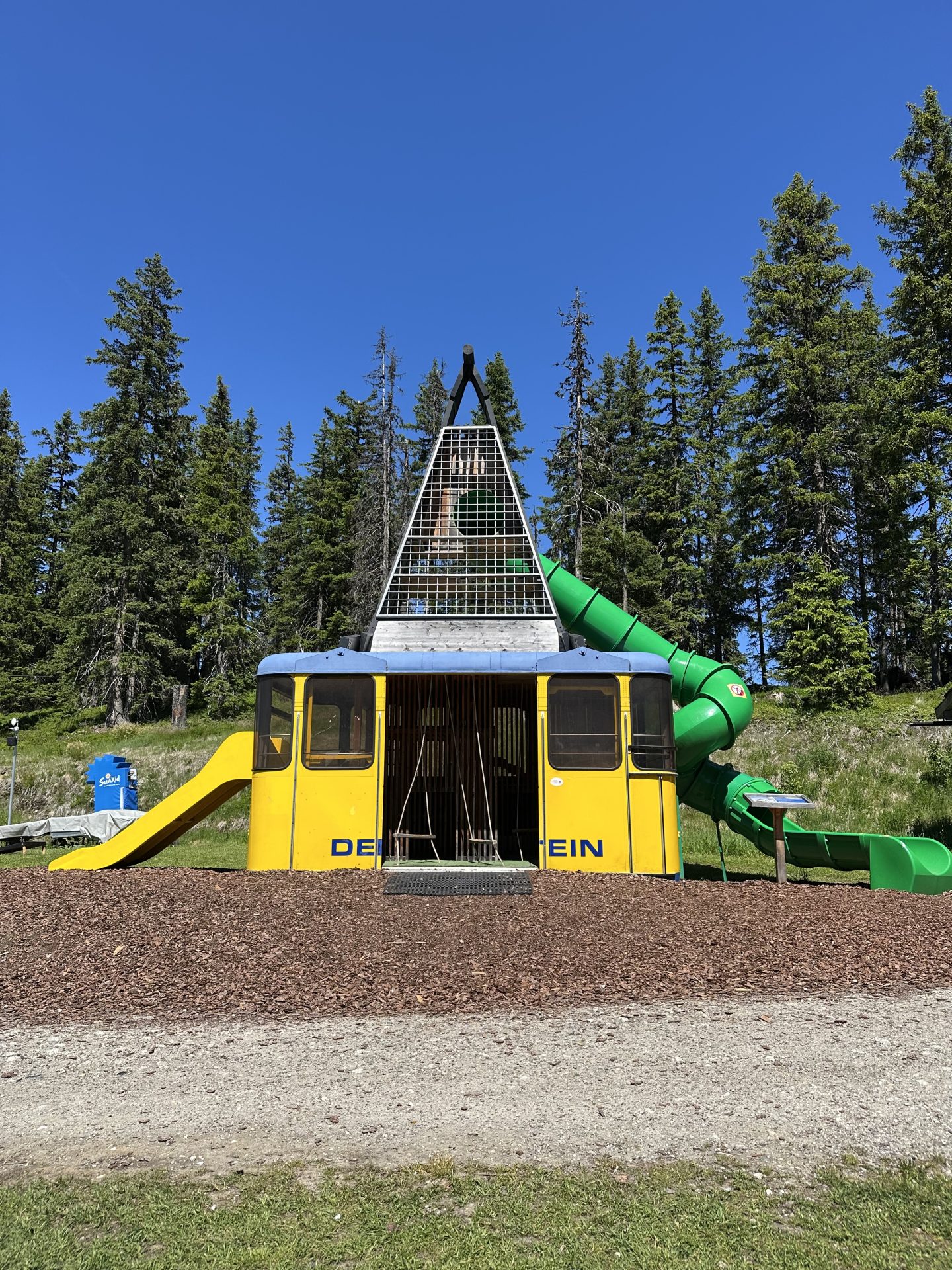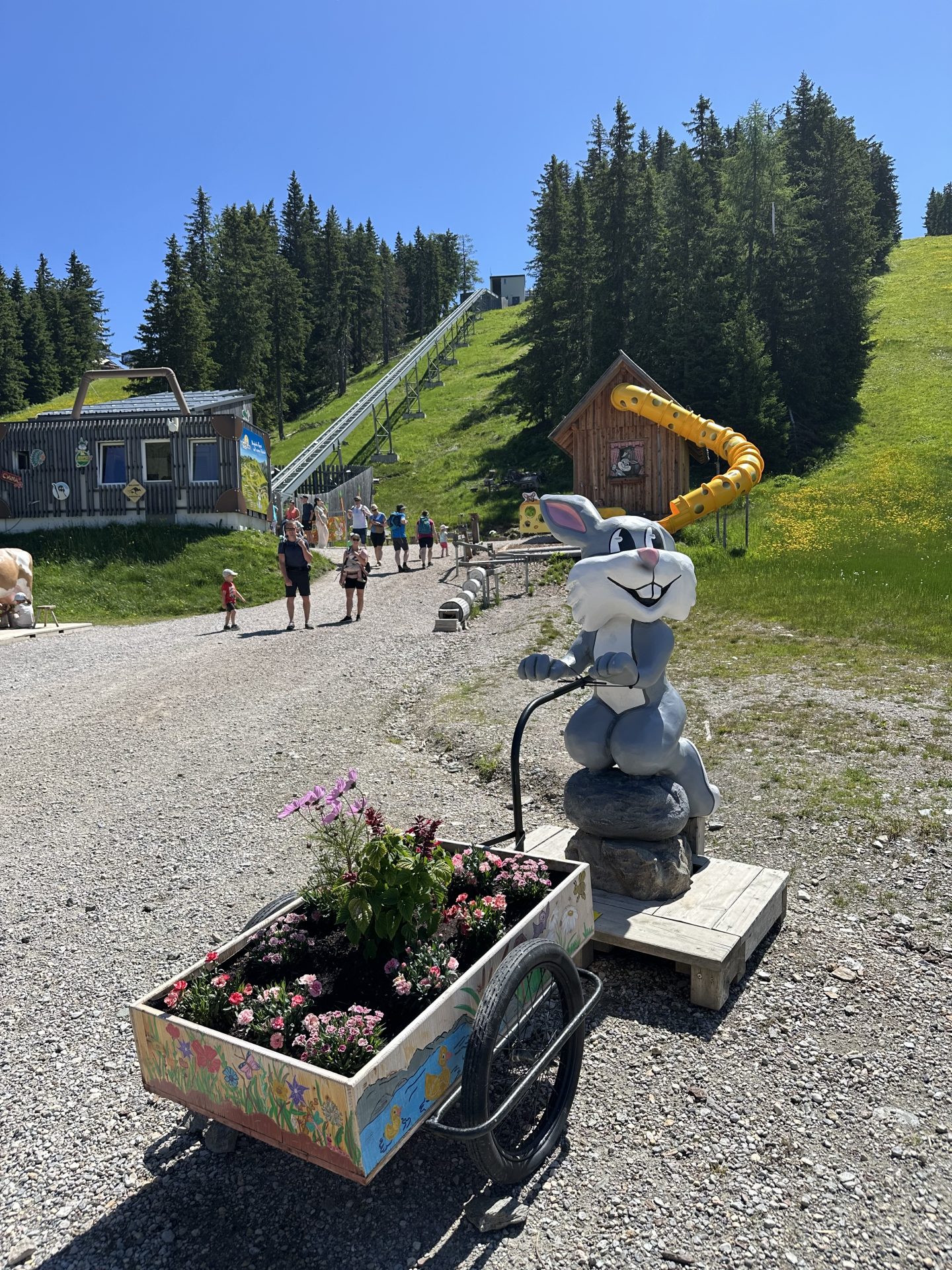 V Avstriji smo se ustavili v priljubljenem alpskem središču Schladming, kjer smo obiskali Hopsiland Planai – največje otroško igrišče na nadmorski višini skoraj 2.000 m. Do vrha se povzpnete z gondolo. Tu se lahko otroci zabavajo na številnih igralih, vključno z lesenimi tobogani, vodnimi igricami in razglednimi stolpi.